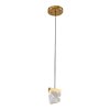 This exquisite LED single pendant lighting is in a brass finish. The frame is made out of iron, and it comes with triangular crystal in clear color. The adjustable cord link makes this fixture suitable for most ceiling heights.