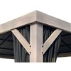 The Yosemite 10 x 12-ft aluminum gazebo with powder-coated wood finish is the epitome of elegance and functionality for your outdoor space. It features heavy-duty aluminum posts and a galvanized steel double roof that will stand up to years of abuse from the outdoor elements. This handsome gazebo seamlessly combines modern design with durable materials to create a sanctuary that will elevate your outdoor living experience.