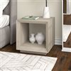 Striking in its simplicity, this modern side table emphasizes clean lines and straightforward design. The table's seamless design is given an extra dimension with the bevelled banding around the edges. The plinth base anchors the look, while the natural wood-look finish adds texture and tonal variation to your living room, family room, or office. The open cube design creates flexible storage opportunities for your books, magazines, or crafting supplies.
