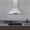 - Professional-quality canopy range hood available in Matte Black, Matte White, and Stainless Steel