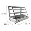 This 34-in countertop heated food merchandiser display is an excellent choice for Pizza shops, concession stands, bakeries, delis, and all sorts of restaurants that need to keep food visible, warm, and ready to grab and go. Glass panels on four sides and two LED lights at the top show off your best products. This display cabinet will surely attract your customers' attention and increase sales. The front sliding door is for self-service while the rear door allows staff to load the warmer quickly. It includes a water pan to add humidity and prevent the food from drying out. The thermostatic temperature control always ensures consistent temperature, and an independent light switch allows you to control the lights separately from the temperature. The temperature range is 30 to 90 °C. The three adjustable stainless steel, rust-resistant and easy-to-clean shelves will provide ample space for all your products.