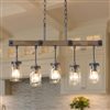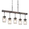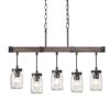 Why not decorate your kitchen with this high-end pendant light, consisting of five mason jar-shaped bottles of varying lengths. Feature antique distressed black and dark brown faux wood grain finish, this 5-light large linear distressed rusty and faux wood pendant light will sure add traditional retro to your home place.