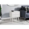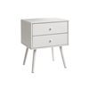 Introducing the ultimate accent table that seamlessly blends fashionable style with practical functionality! Standing at 24-in H, this white laminate end table with a space-saving design is the perfect addition to a small bedroom as a nightstand, living room, or any cozy nook in your home. With its simple, modern design this accent table is crafted with solid wood legs and durably designed to handle everyday life, while adding a touch of chic to your decor. Featuring two spacious storage drawers with wood handles, you can easily stow away your essentials, from books to remotes. Plus, the easy to clean top means you can wipe away spills in a flash making maintenance a breeze. This accent table is easy to assemble with illustrated instructions included, allowing you to set it up and start enjoying its benefits in no time. To ensure your peace of mind, we include a 5-year limited warranty against manufacturer defects for this fabulous piece.