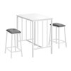 Elevate your dining experience with this trendy 3-piece counter height dining set! Made for casual family dining, this contemporary and fashionable style bistro set has a white laminate 36" rectangular table top and white metal legs. The grey fabric cushioned seats provide ultimate comfort while the sturdy construction ensures durability for years to come. Perfect for small spaces, this 3-piece set is easy to assemble with full illustrated instructions included. Daily maintenance is convenient with an easy to clean top, making it a practical solution for any kitchen or dining space. Backed by a 2 year limited warranty for your peace of mind, this 3pcs set is a must-have if you are looking for a space saving design to upgrade your home.