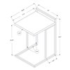 - C-shaped accent table with a metal base that can be slid under a sofa or bed to keep items close by when you are seated