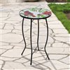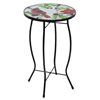 This garden table will be your best patio decoration. The red design of berries, a flower and a cardinal bird will add a pop of color to your greenery. Place down a light snack or your cell phone for easy grabbing. It can even be a great stand for a small plant. Product Features: Metal and glass garden table. Features a red cardinal bird. Red berries and a flower on leafy stems. Brown pinecones also accent the greenery. Black metal legs for stability. Perfect for patios, porches and small hallways.