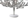 This wonderful flocked tree will add a touch of winter to your holiday decor. This is a 36-in tall flocked unlit artificial Christmas tree with 178 tapered tips, each 1-in wide. It has a medium profile and bendable wire branches for shaping. For indoor use only. The tree comes in three easy-to-assemble pieces, including a FREE white metal round stand. The tree easily screws into the base. Dimensions: 36-in high, 26-in base diameter, with 8-in from the floor to the first branch. Made of PVC and metal.