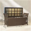 Outsunny offers a 2-in-1 high-capacity storage solution and a comfortable seat. This patio bench with storage is handwoven with PE wicker, offering the look of natural rattan with enhanced water resistance. The heavy-duty steel frame makes it hold weight without warping. With a soft cushion and two handles, it's easy to carry, making it suitable for seating and storing items in any outdoor area. Use this outdoor storage box for garden tools, deck or balcony essentials, or poolside supplies.