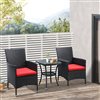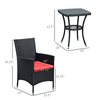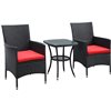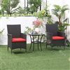 Outsunny Black Wicker Bistro Set with Red Cushions Included - 3- Piece
