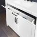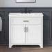 MDF 36-in vanity in white with matte black hardware and white engineered stone countertop.