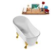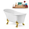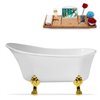 Streamline 28W x 59L Glossy White Acrylic Clawfoot Bathtub with Polished Gold Feet and Reversible Drain with Tray