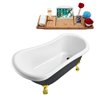 Streamline 28W x 61L Glossy Black Acrylic Clawfoot Bathtub with Polished Gold Feet and Reversible Drain with Tray