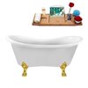 Streamline 30.7-in W x 62.2-in L Oval Brushed Gold/White Acrylic Reversible Drain Clawfoot Bathtub with Tray