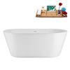 Streamline 59-in Freestanding Oval Soaking Tub w/ Glossy White Drain - Glossy White