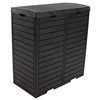 Looking for a convenient way to keep the yard clean and litter-free? This stylish weather-resistant trash can is the solution. This sturdy decorative outdoor patio trash can is made of polypropylene resin but has the look of natural wood, providing a stylish yet durable place to dispose of yard clippings, trash, soda cans, and more. The classic black colour will complement any decor style or colour. It also offers two inner sections. Use one for trash and the other for recycling. This trash can features a double-lid enclosure that hides the garbage bag below the lid and out of sight. Plus, the lid keeps the trash securely contained within the container so the garbage won’t scatter across the lawn during a windy day. This outdoor trash bin with lid is also easy to clean with built-in liquid trays at the bottom of the unit. The trays are easy to remove without touching the contents, making this unit simple to maintain.