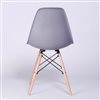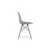 A modern version of this dining chair, made of durable grey acrylic standing with a wooden frame.