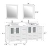 Vanity Art 72 W x 18 D x 36-in H White Double Sink Bathroom Vanity w/ White Engineered Marble and Mirrors