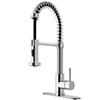 The pull-down, dual action spray head on the VIGO® Edison Pull-Down Spray Kitchen Faucet allows for your choice of aerated flow or powerful spray for all your modern kitchen needs. The 360° swivel spout extends up to 30", and its spiral details and solid brass construction make it a highly functional and beautiful statement piece. Features a matching deck plate for added functionality and ease of installation.