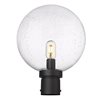 - Preserve a simple and sophisticated motif in a quest to supply exterior lighting. Crafted of black finish aluminum, its simple base is made more festive when topped with a delicate clear seedy glass globe.