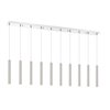 Windchime-inspired, this stunning ten-light island pendant adds quirk and style to any kitchen. With a brushed nickel finish, the open and clean design casts a soft glow.