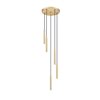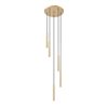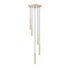 Sculpted simplicity infuses a modern five-light LED chandelier that offers energy efficient illumination that's chic and dimmable. The fixture boasts a round canopy and slim light housings, all in a lovely modern gold finish that imparts rich warmth. Its staggered spiral of light adds visual interest and depth, perfect over a dining table or sophisticated living area.