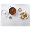 - Glass lid with silicon seal that reduces moisture loss, enabling more efficient cooking
