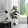 Vickerman 4' Artificial Potted Fiddle Tree. Elevate your indoor decor with the 4-Foot Tall Potted Faux Fiddle Tree with 39 Leaves by Vickerman and enjoy a touch of nature in your home or office. This faux fiddle leaf fig tree is a stunning accent piece for your home decor, featuring realistic features and intricate details that make it stand out. Its vibrant green color is perfect for adding a pop of color to any room. Designed to fill empty corners and enhance your space with greenery decor, this tall faux plant is perfect. The artificial floor plant is maintenance-free, so you can enjoy the beauty of the fiddle tree without having to worry about watering or pruning. A simple wipe with a dry cloth is all you need to remove any dust. Ideal for indoor use, this faux fiddle leaf fig tree is perfect for adding some natural charm to your decor. Whether you're searching for a tall fake plant, greenery decor, or artificial indoor trees, this faux fiddle leaf tree is the perfect choice to add natural charm to your interior decor.