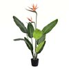 Vickerman 3-ft Artificial potted Bird of Paradise Palm Tree Featuring 9 leaves and 2 beautiful flowers. Fill an empty space and make a statement with this beautiful Tree without worrying about keeping it fresh. It Comes fixed In A 4 x 5 black Insertable pot, making this plant easy to place in the decorative container of your choice. Easy to care for, maintenance free, an occasional light dusting is all that is needed.