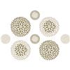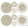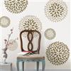 The chrysanthemum wall art kit adds a contemporary geometric floral pop to the room with a chic neutral palette and stylized design. The kit features four large mod blossoms and four smaller decorative flowers. This beautiful peel and stick wall art comes in 8 pieces on 2 separate sheets.