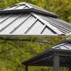 Enjoy outdoor living in style with this elegant and durable gazebo. Instantly create an outdoor gathering spot for family and friends away from the glaring sun and pesky insects. Crafted from rust-resistant aluminum alloy with a sleek black powder-coated finish, it offers long-lasting protection and stability. The 2-tier steel roof provides excellent ventilation while blocking UV rays, rain, and heat. This gazebo is the perfect addition to any backyard or patio.
