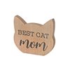Celebrate your feline love with this wooden cat head sign inscribed with the phrase ‘Best Cat Mom’. This adorable tabletop décor, in a rich brown color, pays homage to the cherished bond between you and your furry friend. Crafted from wood, it stands as a single piece, bringing warmth and whimsy to your home in the form of a loving declaration. This tabletop décor maintains lifelong allure with its easy maintenance and care tip. Highlighted Features: The wooden cat head sign features a charming design with the endearing title "Best Cat Mom," blending seamlessly with a rich brown color for a visually appealing and heartwarming tabletop decoration. Crafted from high-quality wood, this décor piece is sturdy and lightweight. Ideal for tabletops, shelves, or any cat lover's space, it adds a touch of joy and personality, celebrating the special relationship between a cat and its mom. It requires minimal care as it can be cleaned by gently wiping with a soft, dry cloth to maintain the wooden surface and preserve the rich brown color. Durable construction ensures lasting sentiment and visual appeal. Thoughtfully sized to stand out without dominating, this head sign is a versatile and delightful décor choice for various display areas. The dimensions of the sign are 6.6 X 0.78 X 5.91 inches for versatile placement.”)