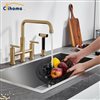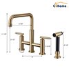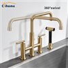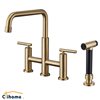 Clihome Brushed Gold Pull-Down Double Handle Kitchen Faucet With Sprayer