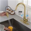 Designed for modern kitchens, this faucet combines intuitive operation with flexible functionality. The touch-activated feature allows water flow to be turned on or off with a simple tap of the wrist or forearm, helping maintain cleanliness during busy cooking tasks. A pull-out spray head paired with a high-arc spout provides excellent reach and adaptability for different sink setups, while the 360° swivel design ensures smooth movement and convenience. The single-handle control offers effortless adjustment of water temperature and flow. Finished with a corrosion- and rust-resistant surface, the faucet resists dirt buildup and can be easily maintained with routine wiping.