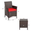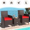 Costway 3-Piece Patio Rattan Furniture Set Cushioned Sofa with Glass Tabletop Deck - Red
