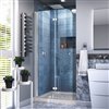 This shower and tub by DreamLine® combines the Aqua Fold™ Shower Screen and SlimLine™ shower base. This trackless European style shower door features a modern design and a pivot that creates an open shower space. Reversible for a right or left wall installation; shower base features integrated tile flanges for water leak prevention, cUPC Certified, and should be installed directly to studs. Plumbing codes vary by state; DreamLine is not responsible for code compliance. Ideal for any bathroom space.