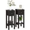 HOMCOM 11.8 W x 29.5-in H Black Composite Modern End Table w/ Drawer and Open Storage Shelf - Set of 2