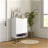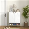 Footwear organization with a touch of character - go for this HOMCOM shoe cabinet. It comes with chevron patterns on the front for something different, with the gold-coloured base adding some elegance. Inside there are three shelves: a shelf is adjustable to fit different sized footwear. Holds up to 12 shoe pairs total, maximum size CA 11.