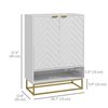 - Chevron pattern doors with gold-tone handles and base for stylish look