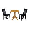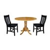 International Concepts 3-Pc 42-in Dual Drop Leaf Wood Dining Table Set w/ 2 Slat Back Dining Chairs - Oak/Black