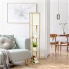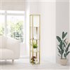 - Floor lamp with 3 shelves for storage/display in Tan finish