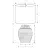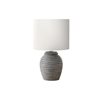 Illuminate your space with style with this 17"h table lamp in grey resin, the ultimate accent piece for any contemporary living space. Made with a chic, textured finish base in a ribbed design, this lamp seamlessly combines elegance and modernity. The ivory fabric shade casts a warm, welcoming glow that brightens up a home office, living room, or bedroom, creating an inviting ambiance. Designed for versatility, this stylish table lamp is ideal to place on a nightstand, console, an end or side table, bringing a fashionable touch to your decor while providing essential lighting. The convenient on/off turn knob switch for a 60W standard bulb (not included), allows you to easily control your lighting, making it a practical addition to your home. Made with quality materials for reliable performance, this decorative lamp includes a 2 year limited warranty against manufacturer defects for your confidence.