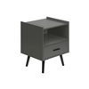Transform your space with this sleek, modern 24-in high side table! With its contemporary design, this dark grey laminate side table is the perfect addition to any modern bedroom as a bedside table or in the living room, combining functionality and style. The smooth, easy-to-clean top not only enhances its aesthetic appeal, but also ensures effortless maintenance. The spacious open-shelf cabinet and storage drawer, complemented by a black metal handle, offer practical functionality for your everyday needs. With step-by-step illustrated instructions, this side table is easy to assemble, allowing you to enjoy your new furniture hassle-free. Its space-saving design makes it an ideal choice for small spaces and perfect for storing your essentials while keeping your space tidy. We include a 5-year limited warranty against manufacturing defects.