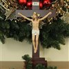 Inscribed "INRI" at the top of the cross which represents the phrase "Jesus Nazarenus Rex Iudaeorum" or "Jesus the Nazarene King of the Jews." Beautifully designed with exquisite attention to detail. Recommended for indoor use.