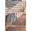 - Hand-braided denim and jute rug with geometric pattern