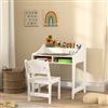 Qaba Kids' Study Desk and Chair Set w/ Storage Compartments - White