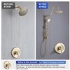 The Rainlex rain shower system is designed to use your existing valve, it replaces the old showerhead with an elegant rain showerhead and multi-function hand shower. The integrated brass slide bar allows adjustable height control for the hand shower and brass soap dish while providing a conveniently located diverter for switching functions. The 10 Inches shower provides a luxury shower experience, the multi-function hand shower can be used separately or together. Available in chrome, brushed nickel, matte black, or brushed gold to match any decor. It takes about 30 minutes to replace the old showerhead. Please note this shower system does not come with a hot/cold mixing valve. The cUPC certificate assumes the quality.