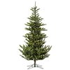 Vickerman 7.5-ft x 56-in Alberta Spruce artificial Christmas tree, 918 PVC/PE moulded tips and 400 warm white Duralite Italian Style LED lights. Incorporate this beautiful tree into your space, it comes with warm white Duralite Italian LED mini lights, features a blend of rich green PVC and PE moulded tips on metal hinged branches, a convenient on/off step switch and metal tree stand are included.