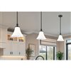 Timeless beauty calls on a simple design in lighting as this single light pendant blends glass and metal to create a tasteful look. A shapely fluted matte opal glass shade glows with dimmable lighting, capping a bold matte black finish metal frame creating notable contrast.