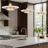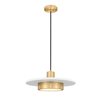 Amazing with a mix of simplicity and iconic retro style, this one-light pendant light makes a difference in living rooms, hallways, and bedrooms. Modern gold finish steel framing combines various sizes of cylinder elements interrupted by a charming matte white disc and suspended with a bold black cord. Dimmable LED lighting shines through a frosted acrylic shade, creating options for varying light levels to suit a range of lighting needs.
