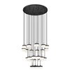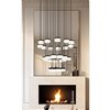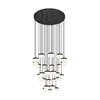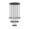 From a broad round canopy high above, this matte black 27-light LED chandelier releases slender cables to a cascade of clouded glass disks that seem to hover in space. The layered heights and generous lumen output suit double-height foyers and stairwells where you want impressive sparkle along with reliable illumination. Viewed from below or from an upper landing, the composition feels dynamic and refined, turning an everyday circulation space into a place people stop to look up.